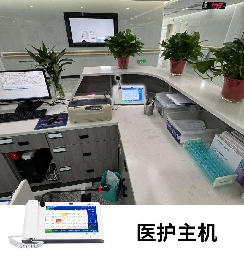 我司自主研发的“MEEYI美一”智慧医养智能化系统,包括信息发布、取药叫号、分诊排队、医护对讲、ICU探视、医患求助、无线呼叫